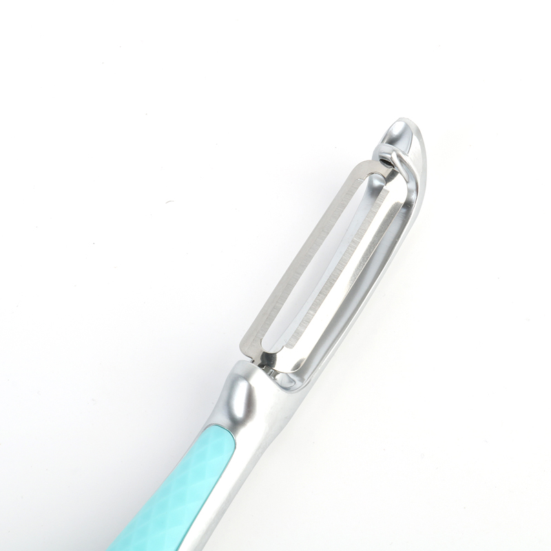 El H542 es una de las ofertas de nuestra empresa, un pelador de hoja recta y mango recto. A diferencia de los diseños tradicionales de hoja cruzada y mango recto, este pelador de hoja recta y mango recto ofrece una gama más amplia de aplicaciones prácticas para los consumidores, proporcionando una experiencia más completa y versátil. Este mini pelador de verduras de aleación de zinc con mango azul claro es parte de nuestra serie de diseño Macaroon, que rompe con la imagen tradicional y aburrida de los utensilios de cocina y comedor. Mejora la percepción visual y de calidad. de estas herramientas, lo que las hace parecer más refinadas y premium. A diferencia de los peladores tradicionales con mangos largos y delgados, el H542 presenta un mango más robusto. Combinado con los delicados colores pastel de la serie Macaroon, complementa maravillosamente la apariencia elegante y metálica. Este mini pelador de verduras de aleación de zinc irradia una sensación de atractivo, lo que lo hace destacar entre otras opciones.