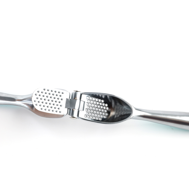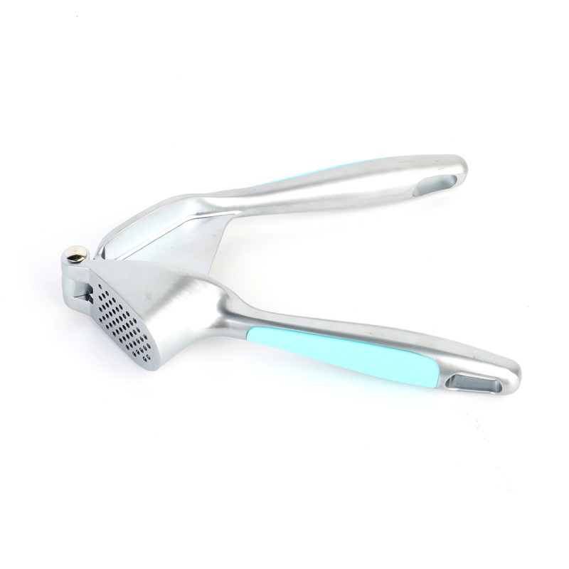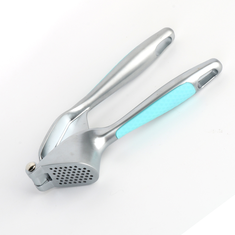 La prensa de ajos está hecha de una aleación de zinc de alta calidad y respetuosa con el medio ambiente. Después de ser fundida a presión y pulida finamente, luego se galvaniza en una variedad de colores. Cada color se combina con un mango de plástico estilo macarrón a juego diseñado para evitar resbalones. Esto no solo mejora la calidad general del producto, sino que también garantiza que permanezca brillante y limpio incluso cuando se expone al agua, aceite, salsas y vinagre en el uso diario. Los orificios duraderos de la prensa de ajo de aleación de zinc de nuevo diseño para liberar el ajo están densamente dispuestos en un patrón circular. Con la presión hacia abajo del mecanismo de presión y el principio de palanca en su lugar, la pasta de ajo se extrae fácil y eficientemente en una consistencia uniforme y fina, mejorando significativamente la eficiencia de cocción.