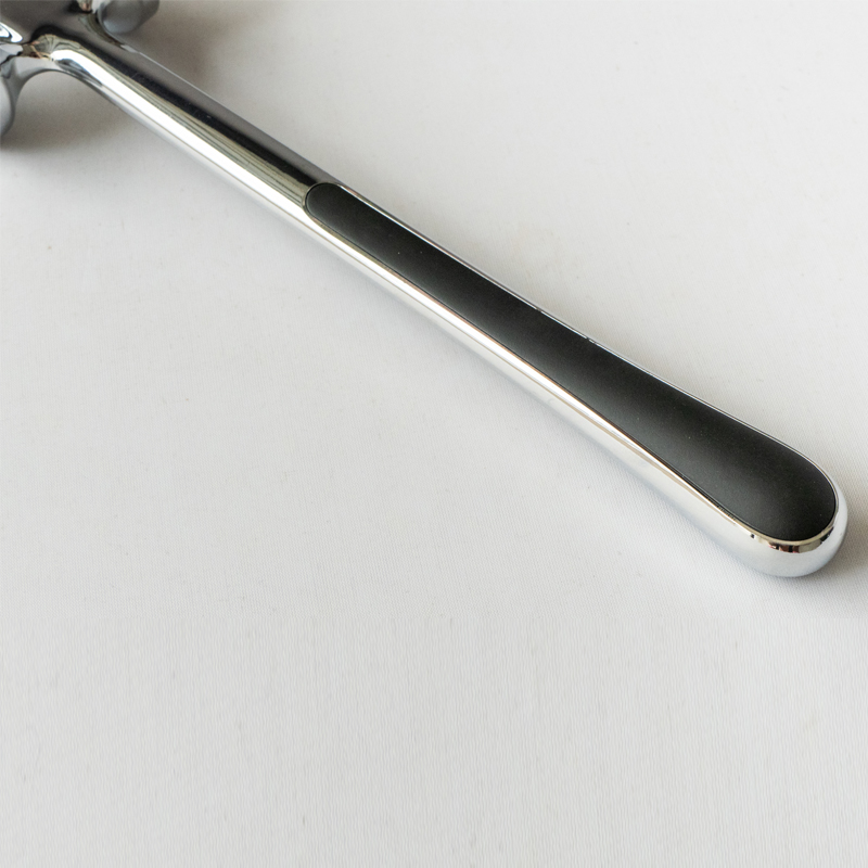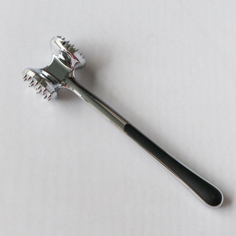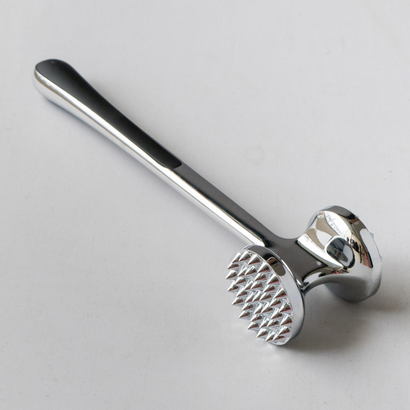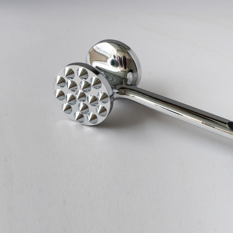 Este es un ablandador de carne de aleación de zinc producido por Jinhua Hanjia Commodity Co., Ltd, fabricado mediante un proceso de fundición a presión integrado. La superficie metálica se pule cuidadosamente a mano y todo el producto se somete a un proceso de galvanoplastia seguro y ecológico. Luego, el recubrimiento se pasiva para hacerlo tan duro como el acero. Con una longitud de 22 cm, tiene el tamaño perfecto para un agarre cómodo en la mano de un adulto. La distribución del peso entre la parte delantera y trasera del ablandador de carne está diseñada de acuerdo con el dorado relación, lo que permite a los usuarios golpear la carne con un mínimo esfuerzo, confiando únicamente en la gravedad de la cabeza del martillo. El cabezal del ablandador de carne presenta dos superficies diferentes para varios tipos de carne. Los topes de plástico en ambos lados del mango brindan comodidad para un uso prolongado. El peso total del ablandador es de 275 gramos y su diseño garantiza una excelente funcionalidad al tiempo que reduce el costo en comparación con los modelos tradicionales en más de un 13%. También es muy fácil de limpiar, simplemente puede enjuagarlo con agua o usar un lavavajillas.